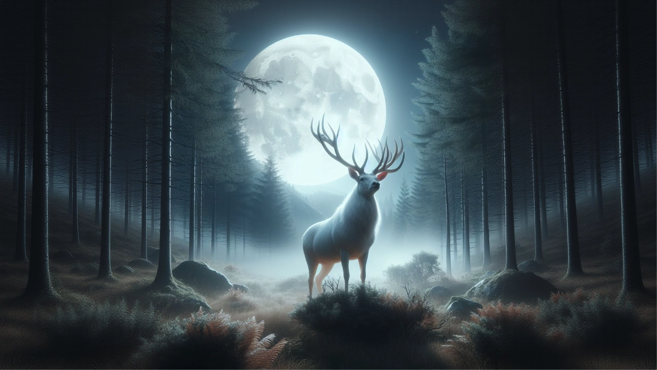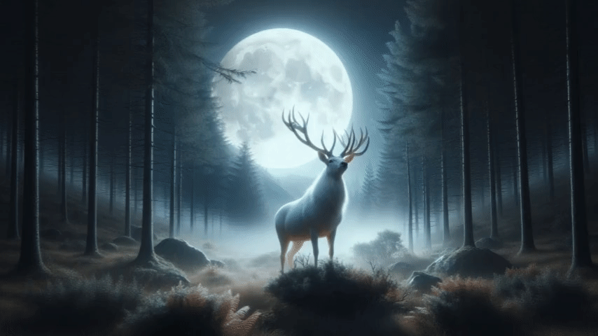 Here's an AI generated image of the white stag in the Narnian moonlight.